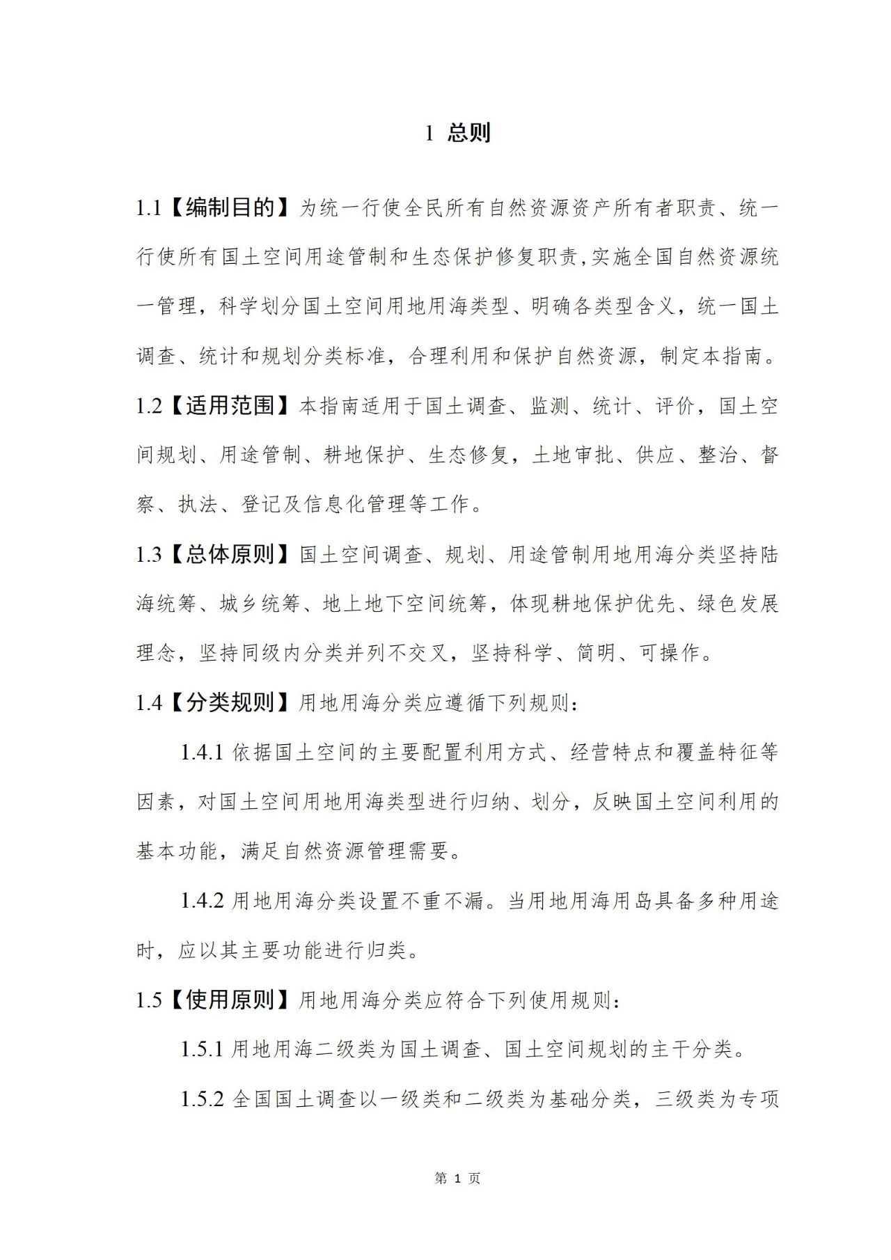 自然資源部關(guān)于印發(fā)《國(guó)土空間調(diào)查、規(guī)劃、用途管制用地用海分類指南》的通知