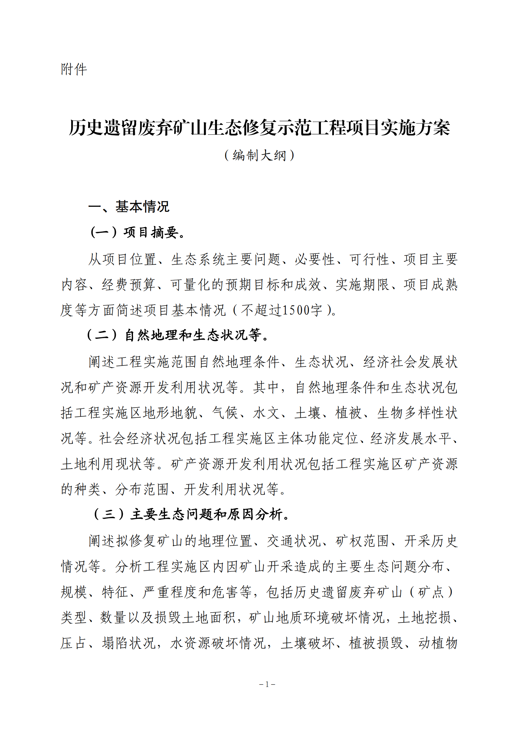 附件:歷史遺留廢棄礦山生態(tài)修復(fù)示范工程項(xiàng)目實(shí)施方案(編制大綱)