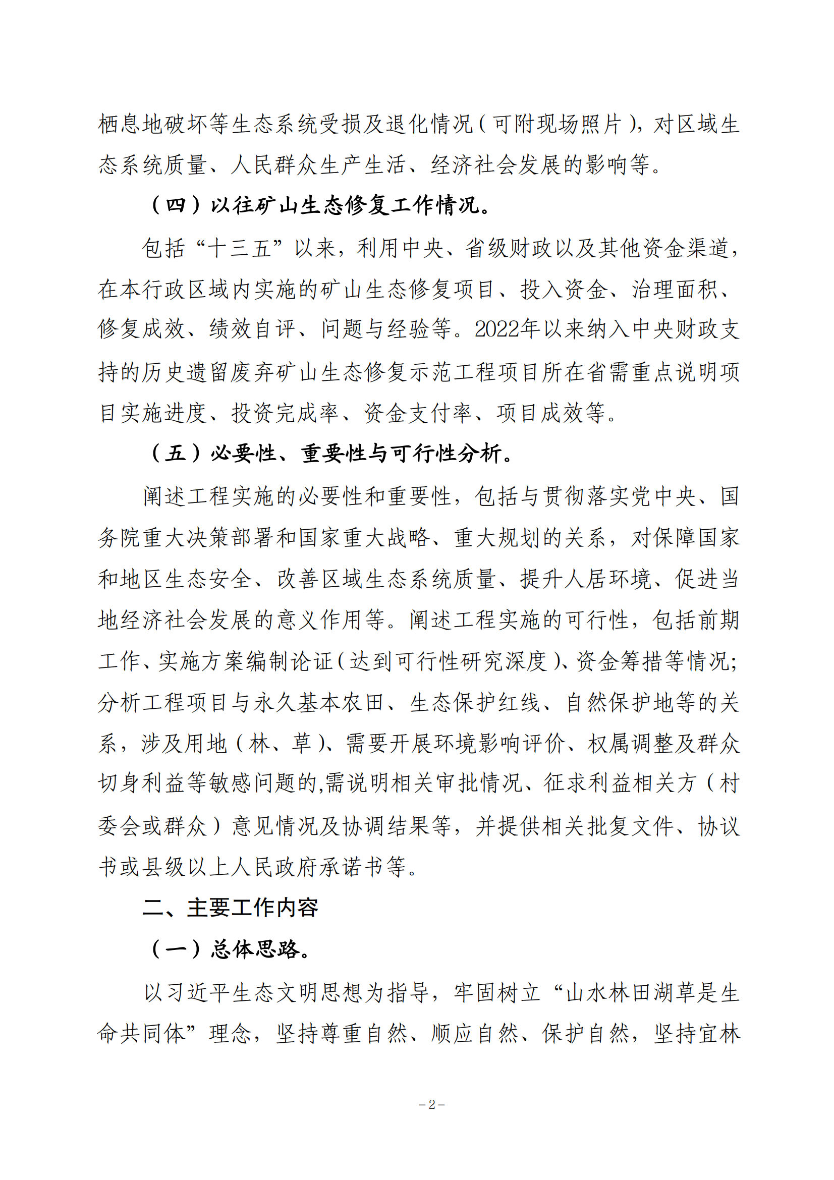 (三)申報(bào)項(xiàng)目實(shí)施方案要科學(xué)可行,按照國(guó)家相關(guān)技術(shù)規(guī)范,結(jié)合本地實(shí)際,從自然地理格局和自然條件出發(fā),依據(jù)生態(tài)系統(tǒng)內(nèi)在機(jī)理和演替規(guī)律,準(zhǔn)確識(shí)別和診斷生態(tài)問(wèn)題,突出安全和生態(tài)功能,統(tǒng)籌推進(jìn)歷史遺留廢棄礦山綜合治理、系統(tǒng)治理、源頭治理,推動(dòng)生態(tài)系統(tǒng)質(zhì)量和碳匯能力提升。