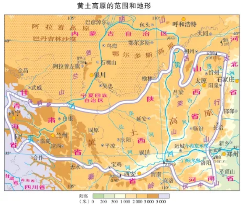 地理標(biāo)志: 黃土高原——世界最大的黃土堆積區(qū)(面積64萬(wàn)km2)