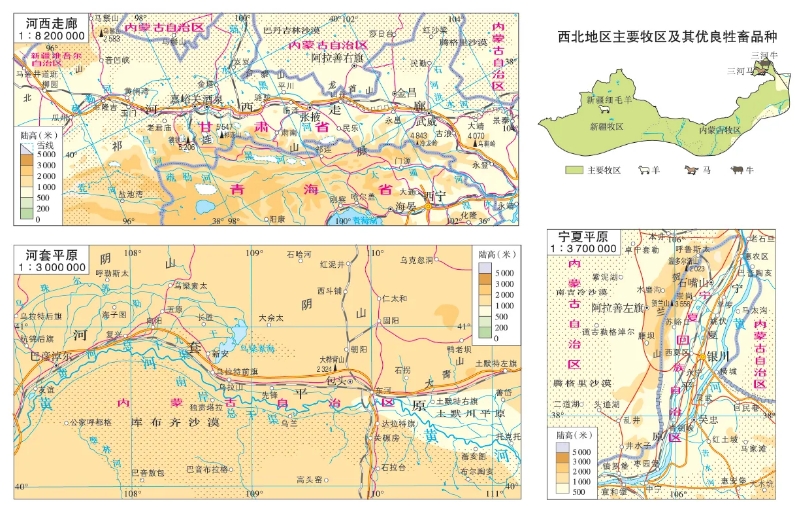 范圍:內(nèi)蒙古高原、黃土高原、云貴高原、四川盆地等(海拔1000-2000米)