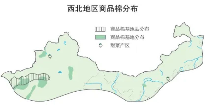 棉花:新疆(占全國(guó)90%產(chǎn)量)、黃河棉區(qū)