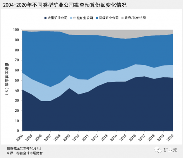 所有類型的公司都在逐年減少草根勘探的預(yù)算,而初級和中級礦業(yè)公司都增加了近礦工作的預(yù)算。