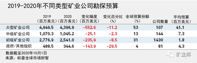 2020年全球礦業(yè)公司勘查預(yù)算出爐