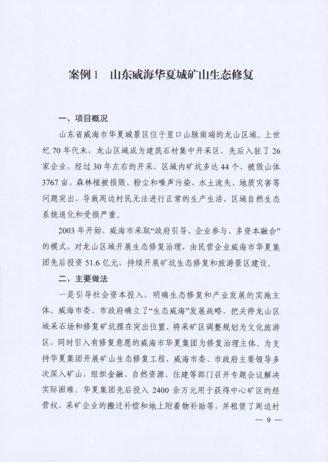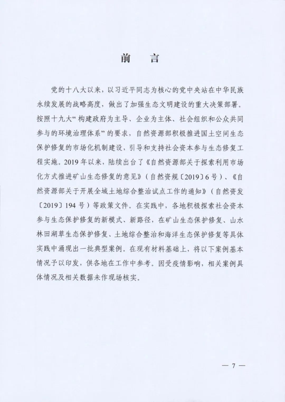 自然資源部印發(fā)《社會(huì)資本參與國土空間生態(tài)修復(fù)案例(第一批)》(附全文)