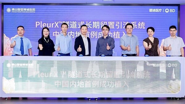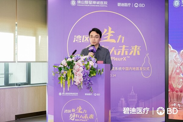 2025年10月14日,碧迪醫(yī)療、佛山復(fù)星禪誠醫(yī)院(以下簡稱佛山禪醫(yī))聯(lián)合舉辦了"灣區(qū)新生力,碧有大未來"GBA-PleurX首發(fā)儀式,正式宣告PleurX隧道式長期留置引流(IPC)系統(tǒng)通過"港澳藥械通"政策首次落地中國內(nèi)地臨床應(yīng)用。該系統(tǒng)是一項(xiàng)專門針對復(fù)發(fā)性、惡性胸腔積液進(jìn)行長期引流的創(chuàng)新方案,也是碧迪醫(yī)療首款通過港澳藥械通政策在內(nèi)地實(shí)現(xiàn)臨床應(yīng)用的創(chuàng)新產(chǎn)品,為深受復(fù)發(fā)性、惡性胸腔積液困擾的患者帶來了更安全的治療手段。在本次首發(fā)儀式上,佛山禪醫(yī)院長趙曉東、佛山禪醫(yī)副院長梁舒鎮(zhèn)、碧迪醫(yī)療中國區(qū)腫瘤診斷事業(yè)部副總裁姚家偉、華潤佛山醫(yī)藥總經(jīng)理蒲力,受邀出席,并發(fā)表致辭。